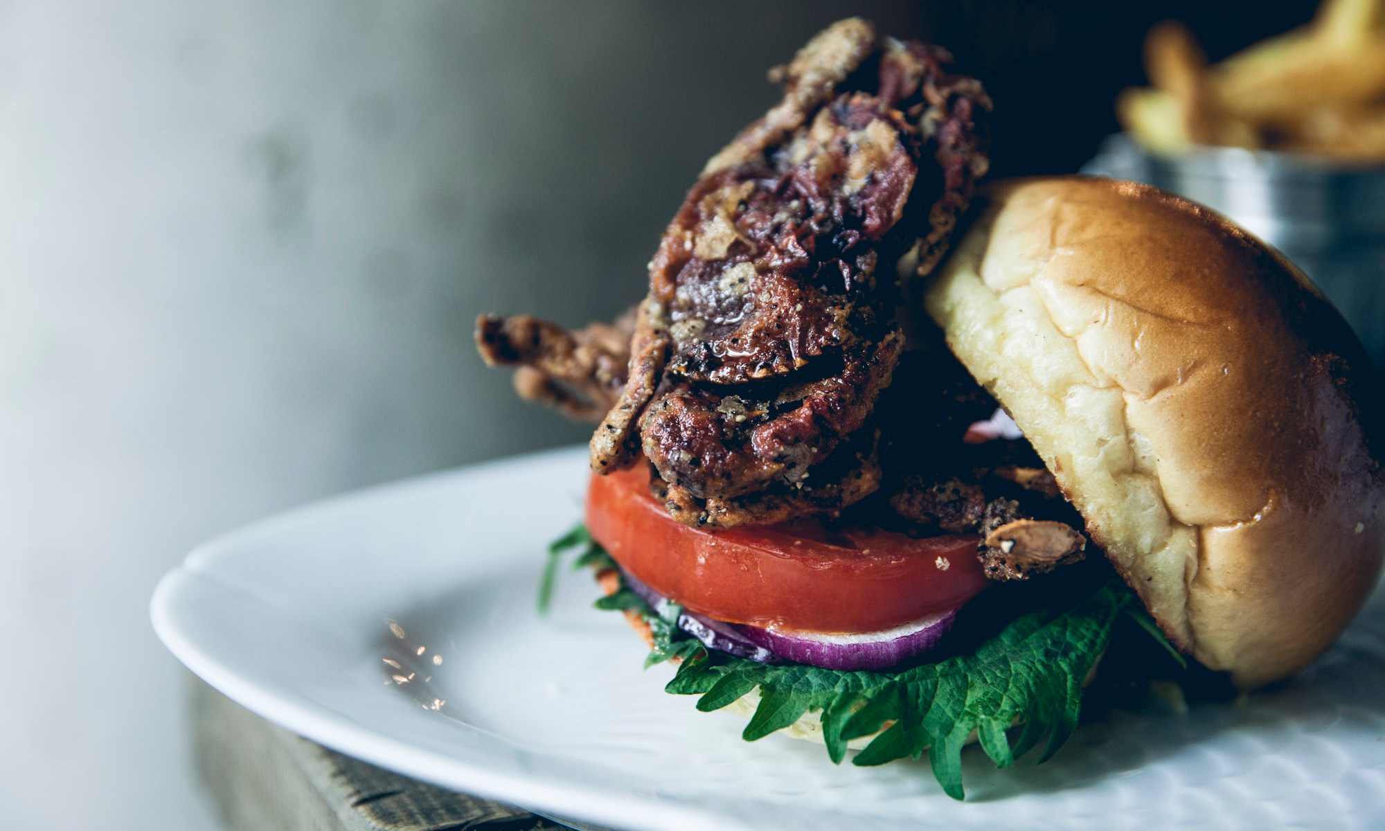 I, of course was there for the crab and crab I got. Opting for the Singapore Crab (it’s coated in chilli – just an fyi), an enormous bowl of crab was put in front of me. I don’t know why I was so surprised, I had ordered crab after all. I opted for sides of asparagus and fries. My dining companion picked the soft-shell lobster burger which was an excellent choice. Succulent crispy crab was layered in a fluffy white bun, accompanied by onion, lettuce, tomato and all the usual burger trimmings. Sauce has to be asked for but a little pot of creamy alioli was soon at the table, the perfect dip for my crabby burger.
